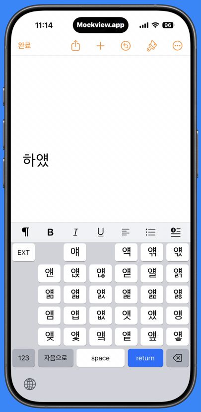 Hanglin은 자음과 모음을 각각 다른 화면에 배치하고 자동으로 화면을 전환하여 이러한 문제를 해결합니다. 19개의 자음과 21개의 모음을 모두 직접 선택할 수 있어 모음 합성이 필요 없고, 후보 선택 방식이기 때문에 글꼴 크기와 상관없이 정확하게 입력할 수 있습니다.이를 통해 iPhone에서의 한글 입력이 빠르고 정확하며 놀라울 만큼 간단해집니다.