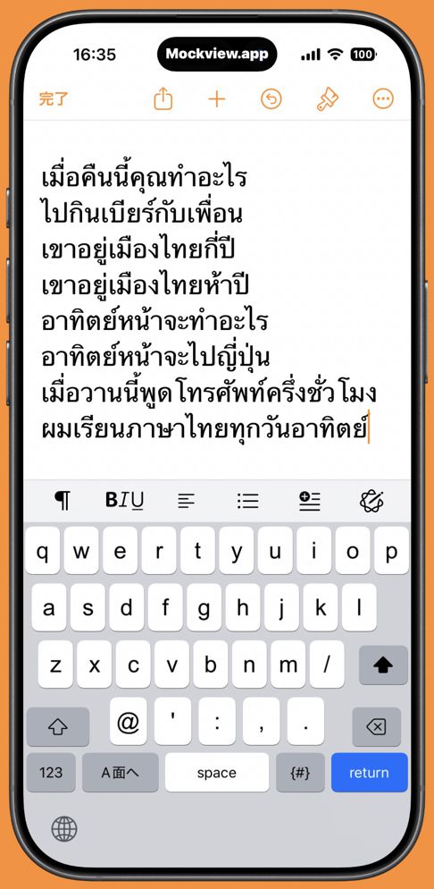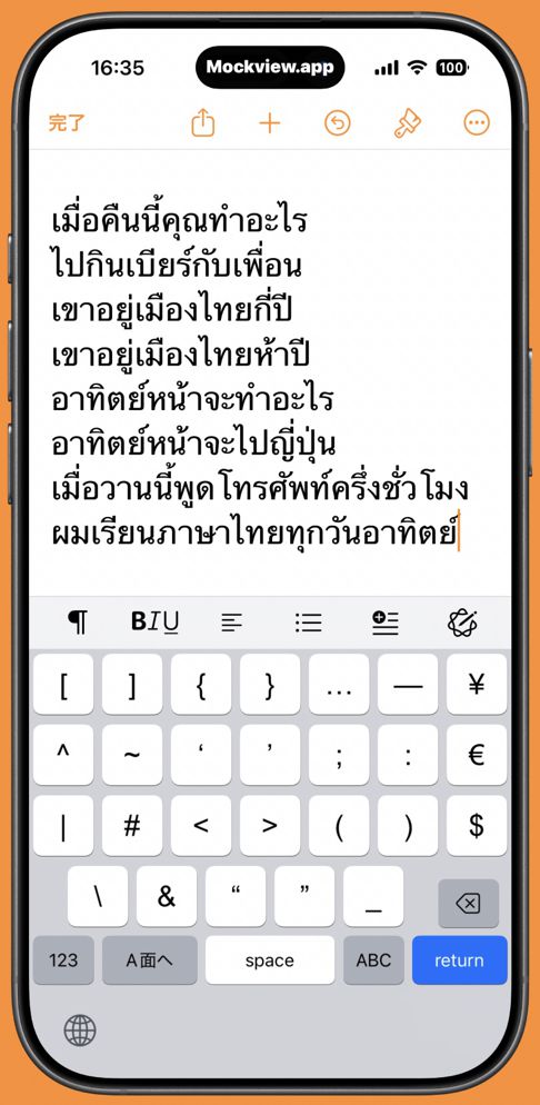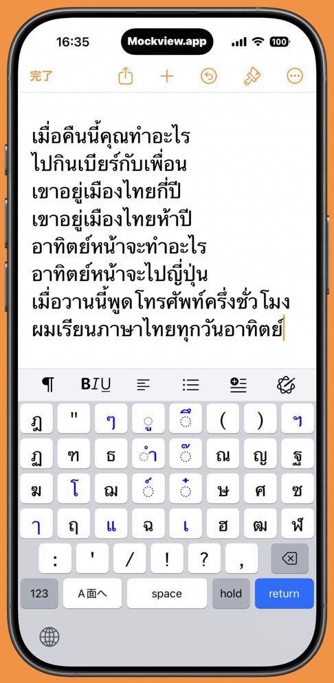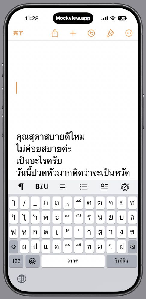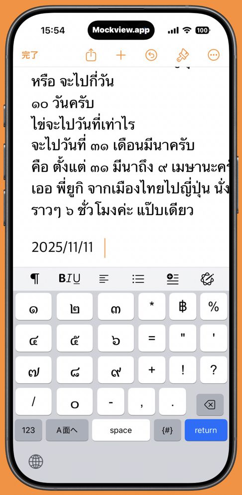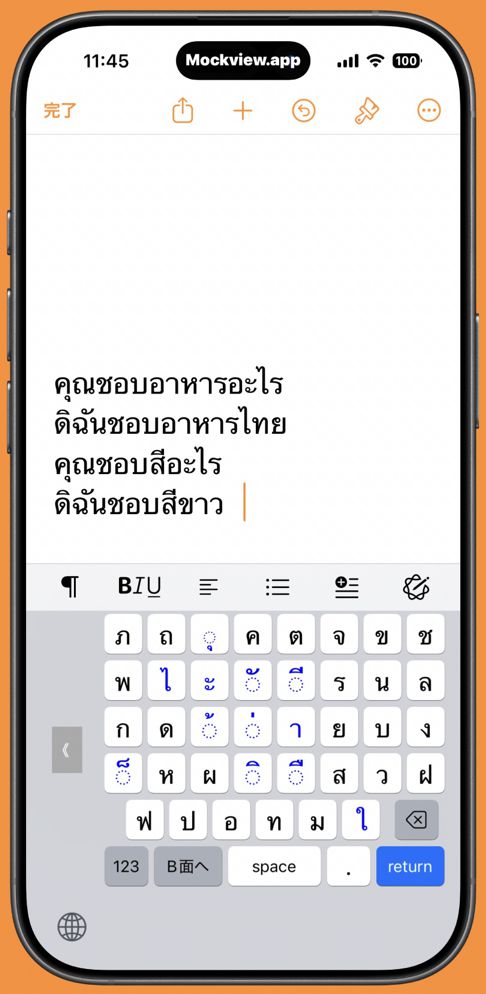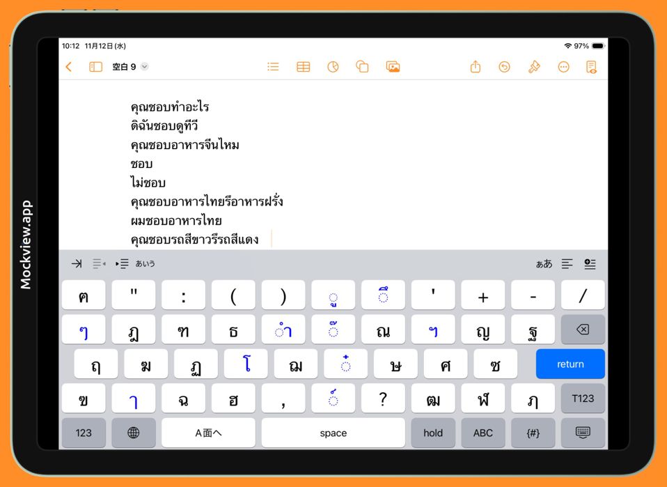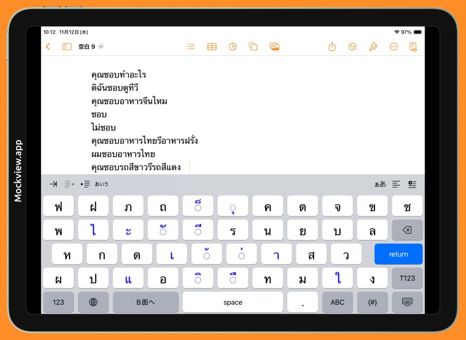 The standard Thai keyboard (Kedmanee) is popular and widely used. However, since it was originally designed for computers with a 5-row × 12-column layout, the keys become very small on an iPhone screen, which often leads to mistaps.