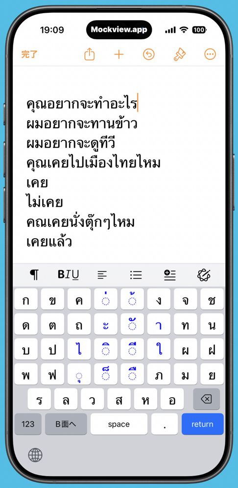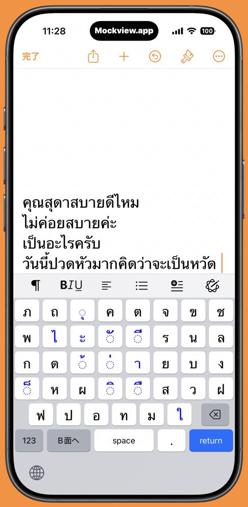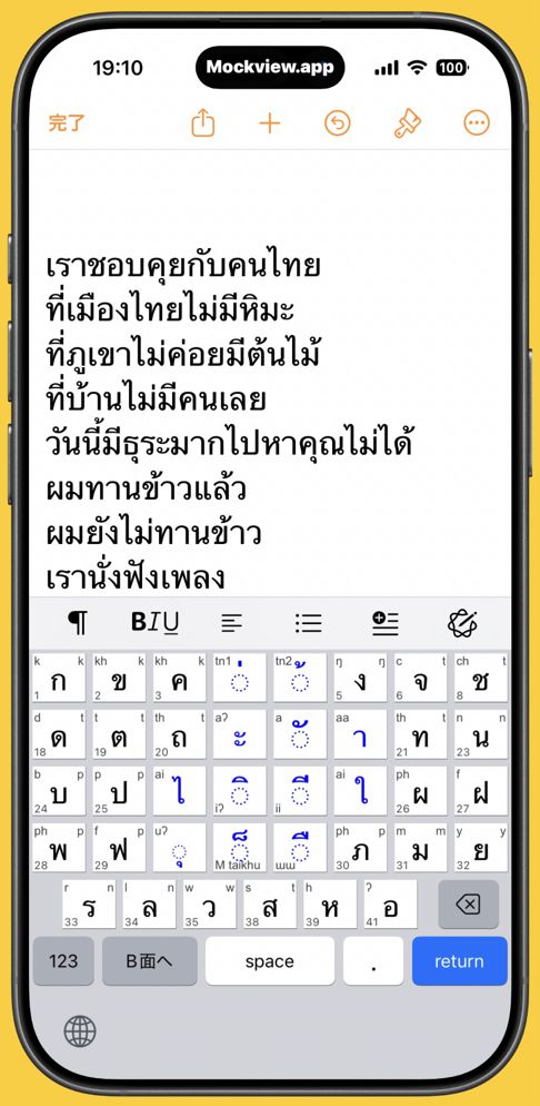 Phakchi solves this problem by adopting a 6-row × 8-column layout while keeping a familiar key arrangement similar to the standard keyboard. This makes it easier for experienced Thai typists to type comfortably on an iPhone.In addition, Phakchi also offers a dictionary-order layout for consonants, making it fun and accessible even for Thai learners who are still getting used to the script.