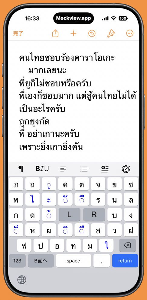 *The L/C/R keys temporarily disappear while typing in Thai, but they reappear after rotating the iPhone and returning it to the normal position.